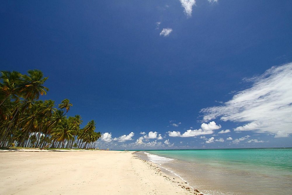 Essa praia é conhecida por sua extensão de areia fina e branquinha, rodeada por coqueiros e um mar de tons azul-turquesa deslumbrantes.